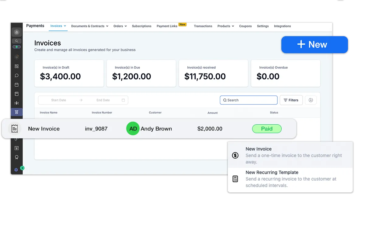 Say goodbye to financial headaches and hello to seamless transactions with our Payments & Invoices feature. Process payments securely & send professional invoices. Stay organized, get paid faster, and focus on growing your business hassle-free.